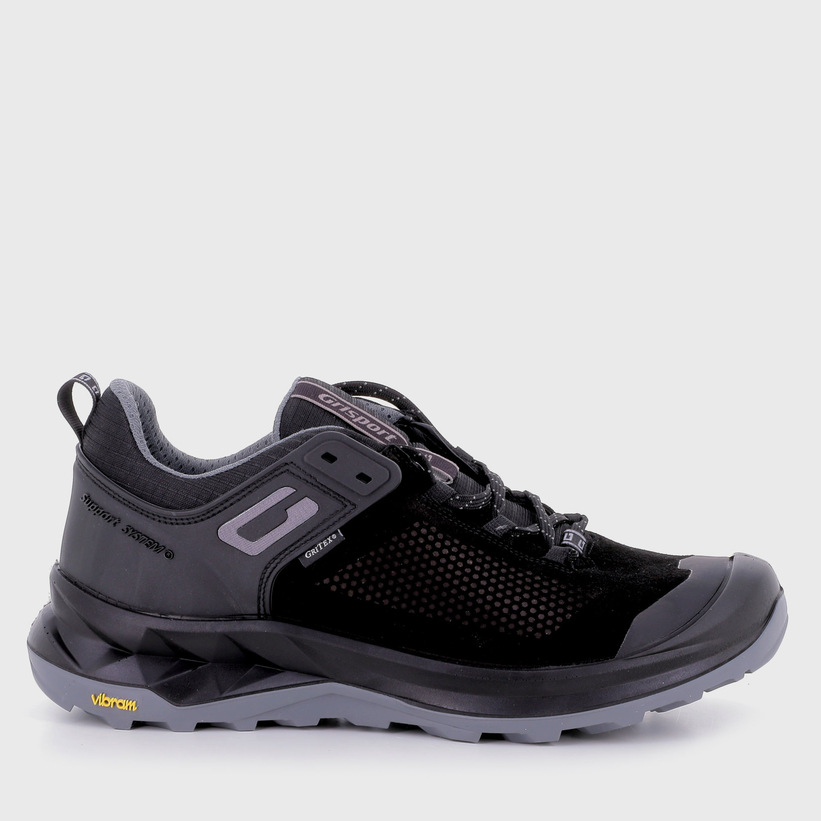 GRISPORT SUPPORT SYSTEM je tehnologija koja pruža učinkoviti sistem fiksiranja pete koji je dizajnirao i patentirao Grisport, kako bi omogućio savršenu kontrolu stopala u svim fazama kretanja.